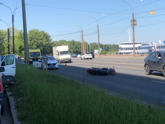 Дтп с мото на пр. Обуховской обороны, д. 195. Мотоциклист в автомобиле реанимации.