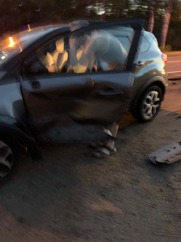 Дтп с мото на 39-м км Приморского ш., за Лукойлом, в сторону города. Каптюр решил повернуть налево из правого ряда. Удар по касательной, скатились в кювет после удара. У двойки перелом ноги. У мотоциклиста Александра Брынцалова возможно внутрисуставной перелом правого колена. На месте друзья. Мотоциклист и пассажирка в больнице, ждут рентген.