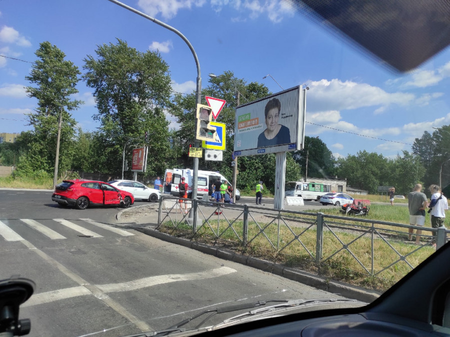 Дтп с мото на перекрёстке Полюстровского пр. и Новолитовской ул.. Мотоцикл и Вольво. Скорая на месте. О состоянии мотоциклиста информации нет.
