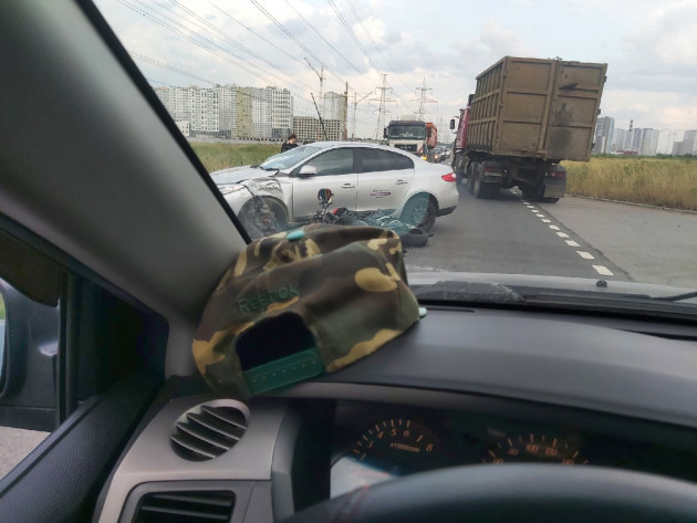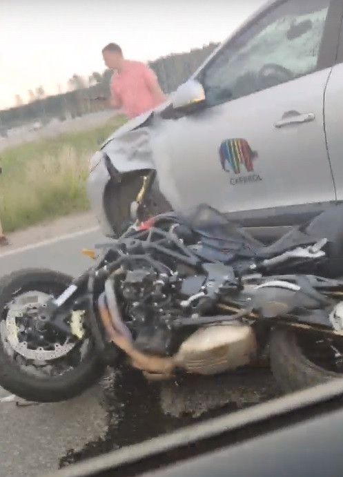 Дтп с мото на Муринской дороге, д.24 (Юлмарт). Мотоциклист в порядке.