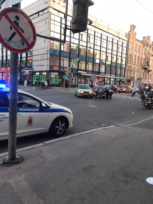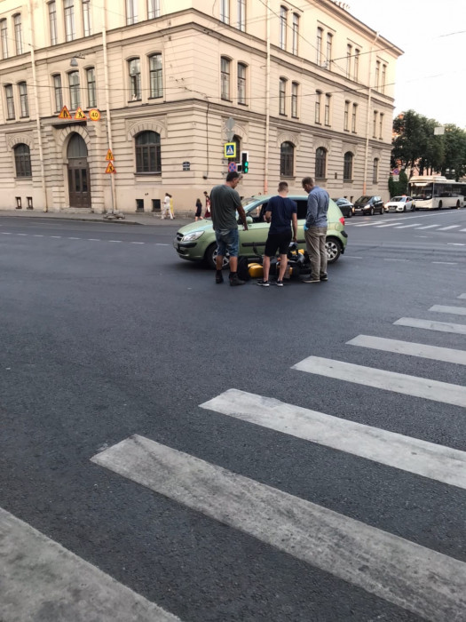 Дтп с мото 11.07.2021 примерно в 23:30 на перекрестке Лермонтовского пр. и ул. Декабристов. Автомобиль Hyundai и мот. Мотоциклист увезен в больницу.