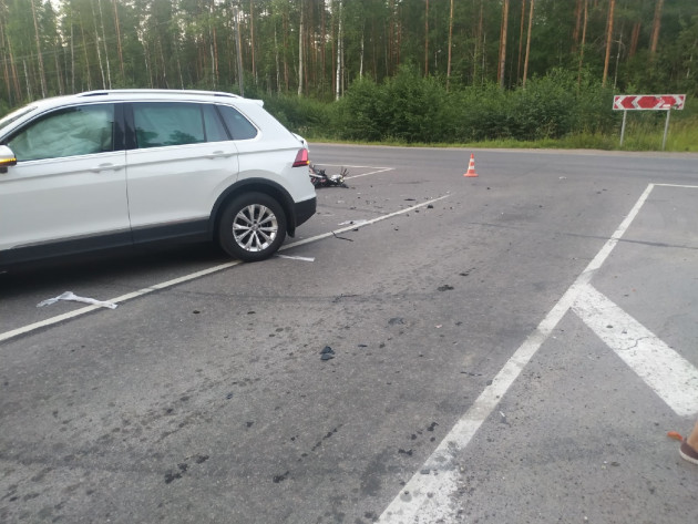 Дтп с мото 11.07.2021 примерно в 20:50 на 41К-108 (59.449236, 30.324327), поворот на Массив Красницы. Столкновение машины с мотоциклом. Предположительно водитель авто Volkswagen Tiguan, двигавшийся от Вырицы, при совершении левого поворота, не предоставил преимущества в движении мотоциклу Lifan LF150, двигавшемуся во встречном направлении. В результате дтп мотоциклист (м.,на вид 37 лет) погиб.