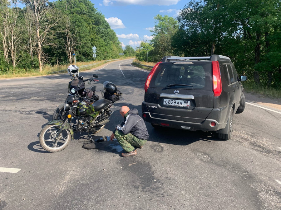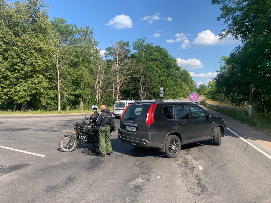 Дтп с мото примерно в 16:20 на перекрестке с дорогой на село Петровское, за дер. Оржицы в сторону дер.Вильповицы. Мотоциклист на мопеде типа Дельта 50 куб. Без ВУ и ГРЗ не уступил дорогу автомобилю Ниссан ИксТрэйл. Столкновение по касательной, на авто повреждения. Водитель мопеда жив, ушиб локтя. На дороге разлив масла из мопеда. От скорой мотоциклист отказался. Связи там нет. Автор поста, отъехал от них на километр, вызвал им ДПС. Остаться не смог, к сожалению, вынужден ехать дальше, друг ждет помощи.