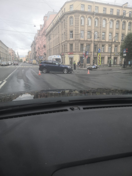 Дтп с мото примерно в 09:25 на перекрёстке Кирочной ул. и пр.Чернышевского. О состоянии мотоциклиста информации нет.