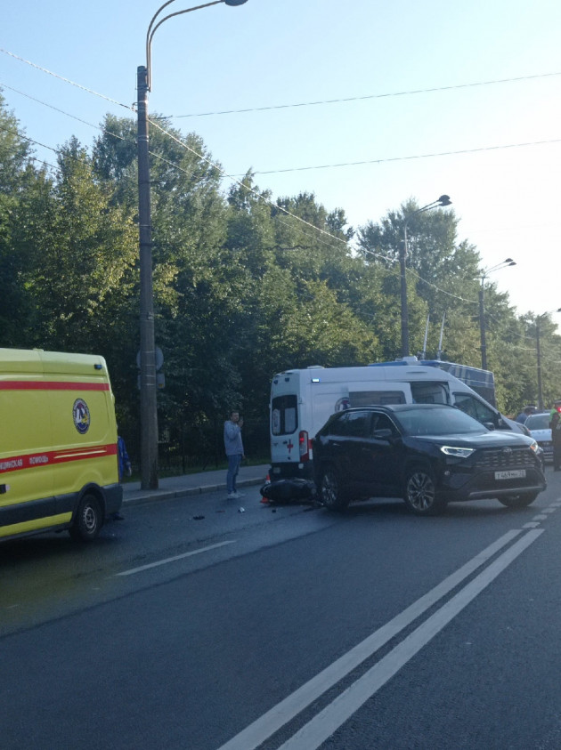 Дтп с мото примерно в 07:40 на Малом пр. В.О., д. 66. На месте скорая. О состоянии мотоциклиста информации нет.