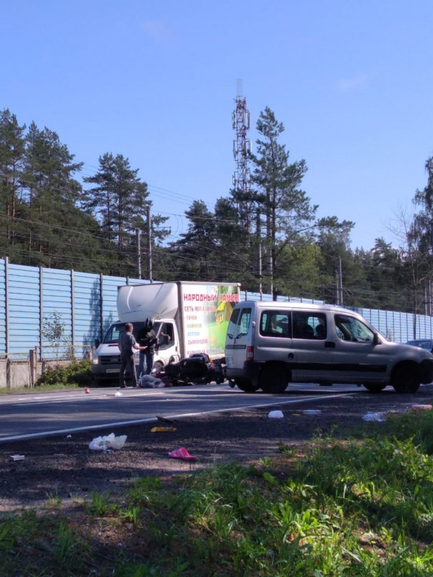 Дтп с мото на Зеленогорском ш. (60.181701, 29.822186), посёлок Комарово. Мотоциклист в порядке. Со слов очевидцев, пешеход (девушка) переходила ПП, сначала её сбил автомобиль, потом мот. Скорая на месте.