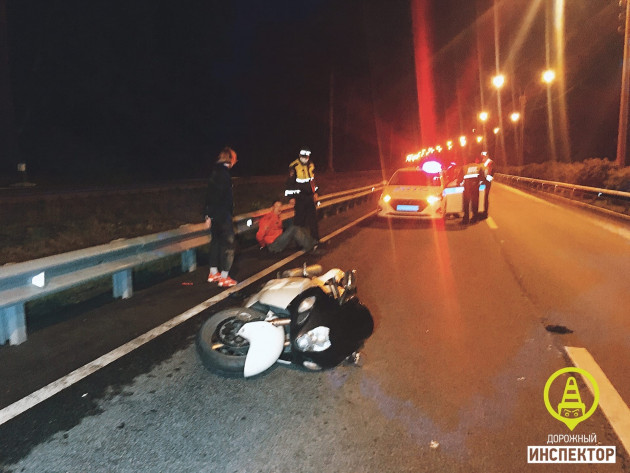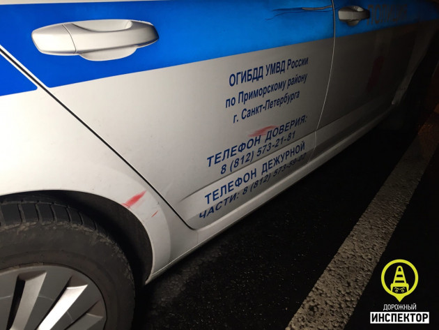 Началась погоня около 1:30 в пос. Ольгино, когда водитель мотоцикла не остановился по требованию инспекторов. Из Ольгино пролетел до Черной речки, развернулся обратно, по Приморскому проспекту до ст. м. Беговая, покружили в СПЧ, и выехали из города в сторону Сестрорецка. Естественно, водитель мото пролетал на "красные" и не особенно думал о безопасности пассажира (ж., 19 лет). Когда его почти зажали в "коробочку", мото пошел на таран и повредил всю правую сторону патрульного автомобиля Skoda. Очень повезло, что не затянуло ногу пассажирки (а для нее ноги очень важны, т.к. недавно закончила хореографическое училище и планирует поступать в театральное).