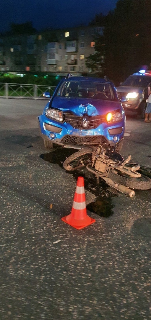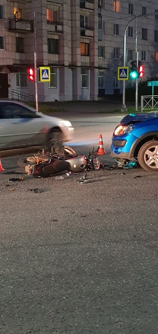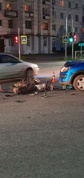 Дтп с мото примерно в 22:00 на перекрестке ул. Борисова и ул. Карла Маркса, Тихвин, Лен. обл.. О состоянии мотоциклиста информации нет.