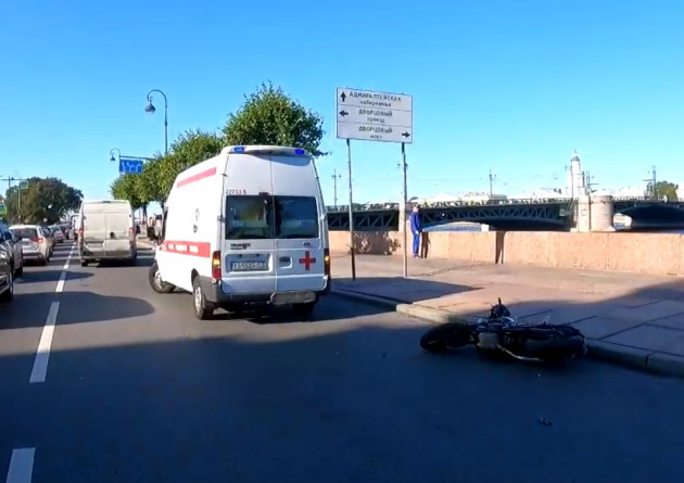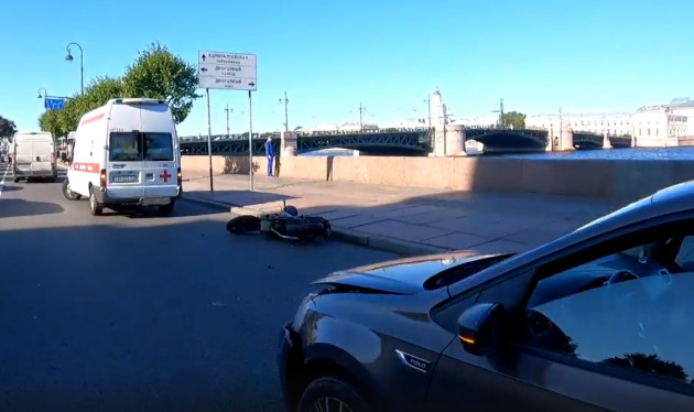Дтп с мото 01.09.2021 примерно в 10:10 на Дворцовой набережной, д.38. По предварительно информации, авто въехал в мотоцикл. О состоянии мотоциклиста информации нет.
