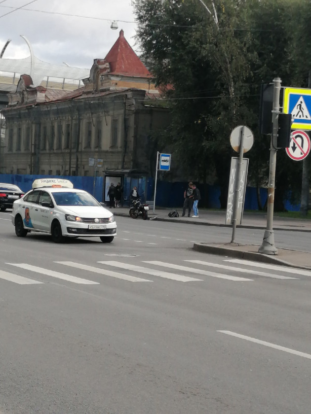 Дтп с мото примерно в 12:00 на пр. Стачек, д. 54. Мот Yamaha Diversion чёрного цвета, номер 1190АВ69. Мотоциклист на ногах, сам вызвал службы.