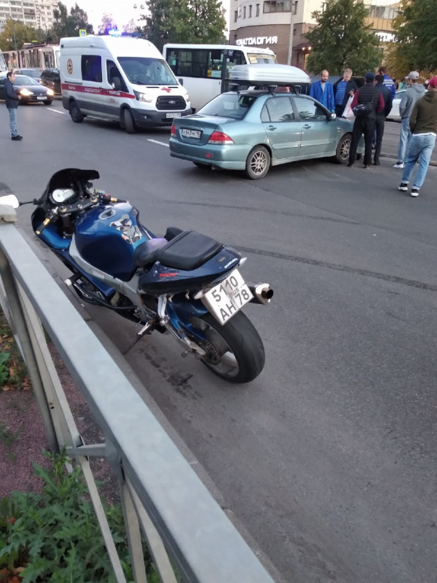 Дтп с мото в 19:28 на перекрестке пр.Науки и ул.Бутлерова. Мот Suzuki GSX-R1000 номер 5110АН78. МЧС и 2 Скорых на месте. Мотоциклист погиб.