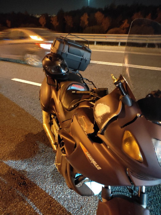 Дтп с мото примерно в 19:30 на КАД, 29-й километр, внутреннее кольцо. Авто и мот. Мотоциклист в порядке. Помощь не требуется.