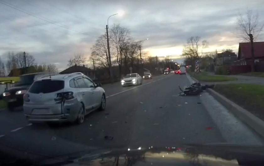 Дтп с мото на перекрестке пр. Ленина и Боровой ул., Красное Село. О состоянии мотоциклиста информации нет.