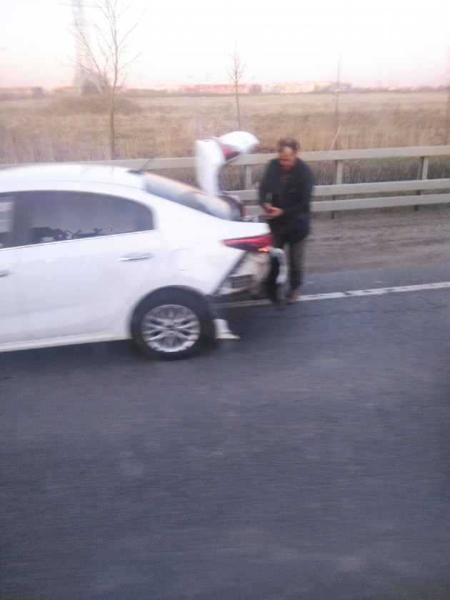 UPD: Мотоциклист не успел вовремя затормозить и въехал в авто.