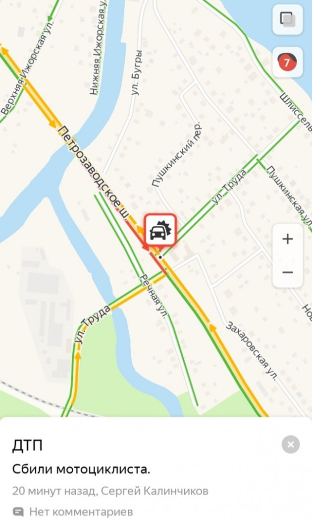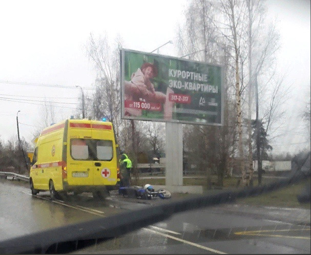 Дтп с мото примерно в 08:20 на Петрозаводском ш., д.17, Усть-Ижора. Мотоцикл Honda CB400 номер 0121АВ60 и авто. О состоянии мотоциклиста информации нет.