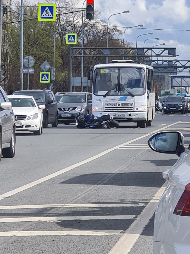 Дтп с мото на перекрестке Дачного пр. и бульвара Новаторов. Мот и маршрутка. О состоянии мотоциклиста информации нет.
