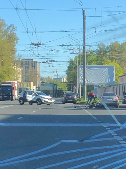 Дтп с мото примерно в 7:30 на Арсенальной ул., д. 27. Каршеринг не заметил мотоциклиста, при повороте в троллейбусный парк. Мотоциклист жив, встал, ходил.