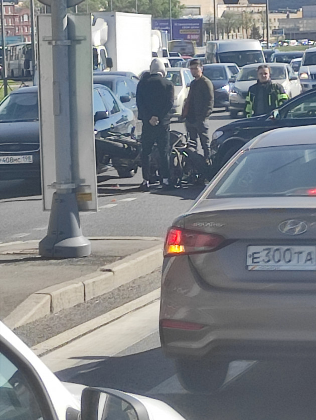 Дтп с мото на перекрестке Свердловской наб. и Арсенальной ул.. Мотоциклист на ногах, ходит.