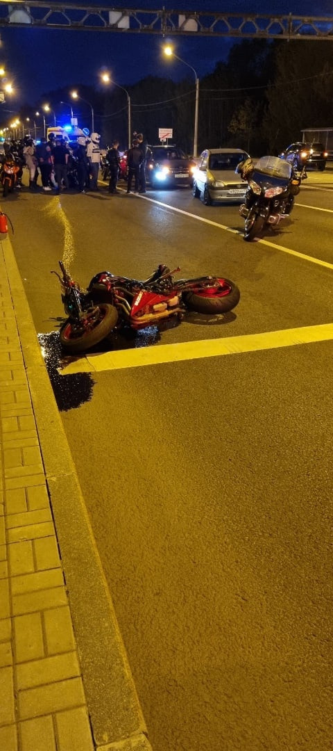 Дтп с мото на Санкт-Петербургском шоссе, д.101 (п. Стрельна). Мотоциклист живой. Пьяный на авто въехал в мот. Мотоциклиста увезли в больницу, что-то со спиной. На месте дтп есть ещё мотоциклисты.