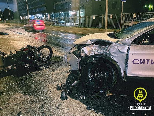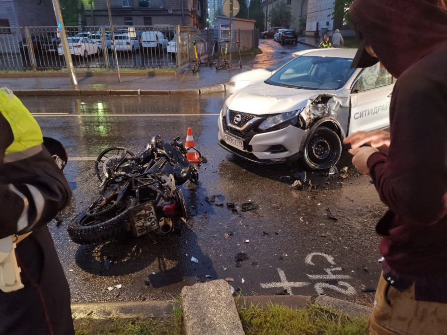 Дтп с мото на пр. Маршала Блюхера, д.14. Каршеринг и мото. Мотоциклист и двойка пострадали. Просьба проконтролировать ситуацию.