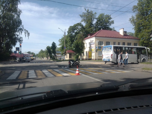 Дтп с мото примерно в 18:00 на перекрестке пр.Урицкого и Ленинградской ул., Луга (58.742755, 29.850103). О состоянии мотоциклиста информации нет.