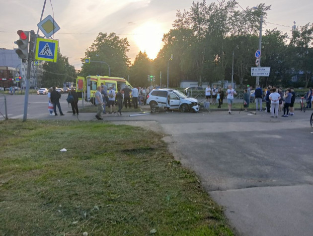 Дтп с мото 10.06.2022 примерно в 20:30 на перекрестке пр. Ленина и ул. Нефтехимиков, г. Кириши, Ленинградская область.