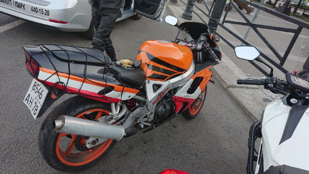 Примерно в 21:45. Мотоцикл и еще участники.