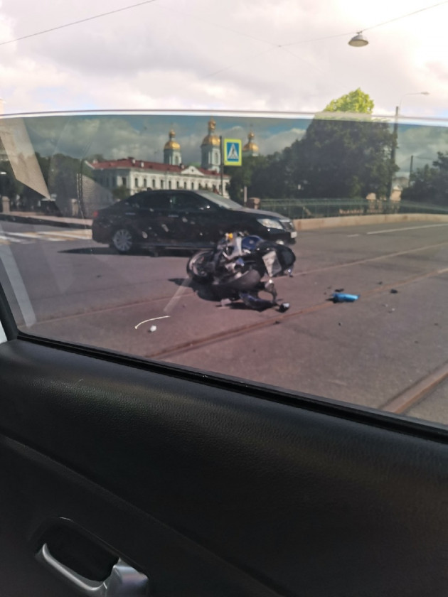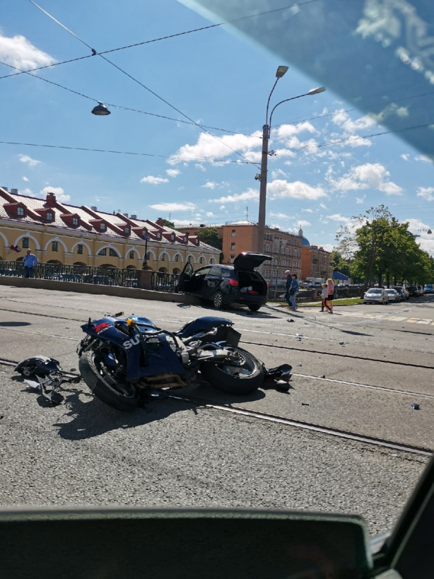 Дтп с мото на перекрестке наб. Крюкова канала и Садовой ул.. Авто и мот Suzuki GSX-R. О состоянии мотоциклиста информации нет. Просьба проконтролировать ситуацию.
