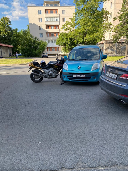 Дтп с мото на Краснопутиловской ул., д.45, в сторону переезда. Авто со встречного направления повернул налево. Мотоциклист цел. Мот Yamaha TDM номер 0021АТ22, возможно, не на ходу. От помощи отказался.