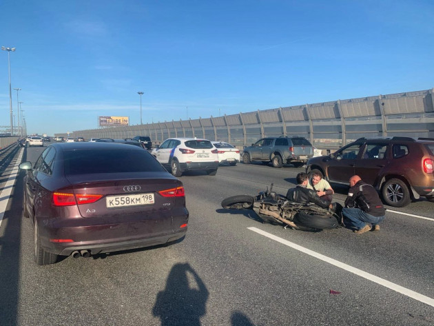 Дтп с мото 22.06.2022 примерно в 18:50 на КАД, 66-й км, внешнее кольцо (59.815602, 30.376900). Впереди произошло дтп между авто, все стали резко и экстренно оттормаживаться, мотоциклист не успел. Мотоциклист жив.