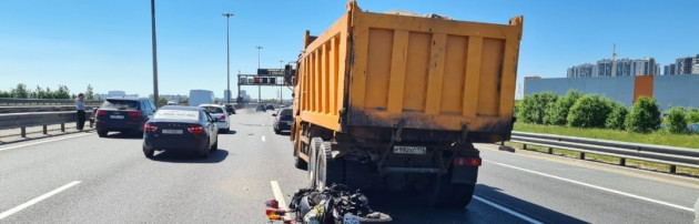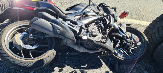 Дтп с мото на КАД, 54-й км, внутреннее кольцо. (59.867847, 30.530115) Мот Bajaj Dominar 400 номер 9871АВ47. Мотоциклист лежит без признаков жизни. На месте знакомые.