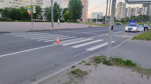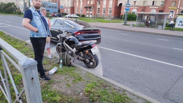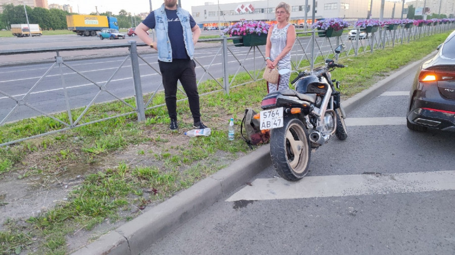 Дтп с мото на Ленинском пр., д.108. Пешеход и мот. Пешеход (выбежал на красный) увезен в больницу. Мотоциклист в порядке. Мот Honda номер 5764АВ47. Помощь не нужна.