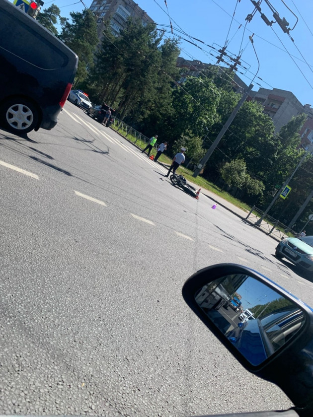 Дтп с мото на перекрестке Светлановского пр. и ул. Жака Дюкло. Авто и мот. О состоянии мотоциклиста информации нет. Просьба проконтролировать ситуацию.