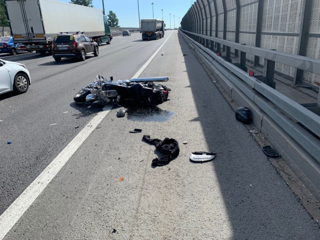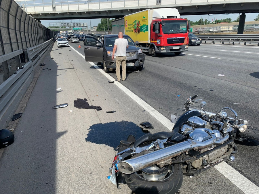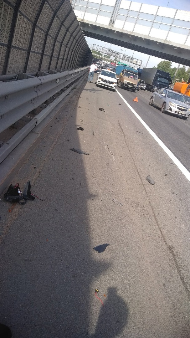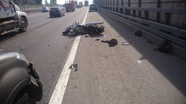 Дтп с мото на КАД, 40-й километр, внутреннее кольцо. (59.982152, 30.508327) Мотоциклист жив, ходит. Мот Honda VTX 1800 номер 2118АВ78. Помощь не требуется.