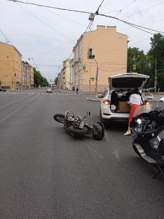 Дтп с мото 06.07.2022 примерно в 19:00 на перекрестке пр. Обуховской обороны и Большого Смоленского пр.. Авто и мот. Мот Honda Shadow 750 номер 0208АК78.