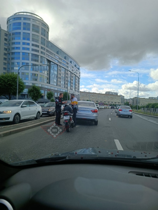 Дтп с мото на Свердловской набережной, д.58, в сторону моста Александра Невского. Авто и мот. Номер мота 2977АР78. Мотоциклист в порядке.