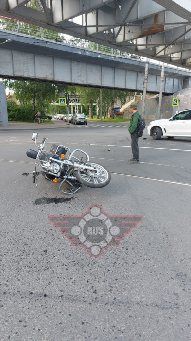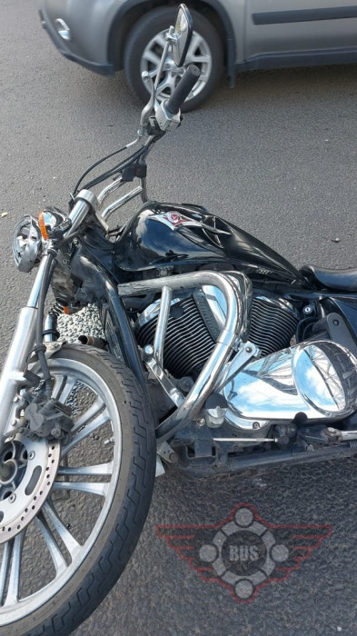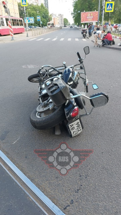 Дтп с мото на перекрестке 1-го Муринского пр. и Лесного пр.. Авто и мот Kawasaki VN Vulcan 900 номер 9902АВ47. У мотоциклиста и пассажира (девушка) легкие травмы. Скорая и ДПС на месте.