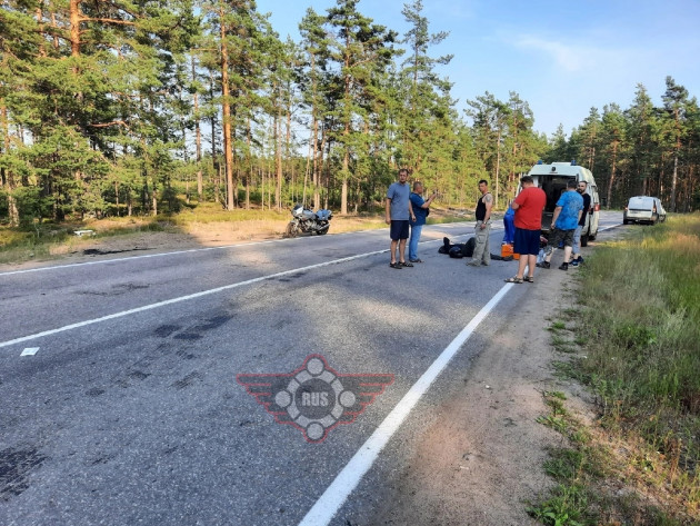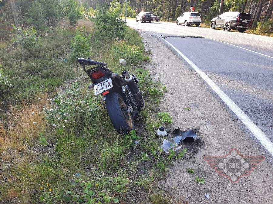 Дтп с мото на Приморском ш. (п. Ермилово, памятник дот номер 6). Мот 2981АМ78. Мотоциклист Иванов Олег Алексеевич, не справился с управлением на повороте. Скорая на месте, жив, общается с врачём.