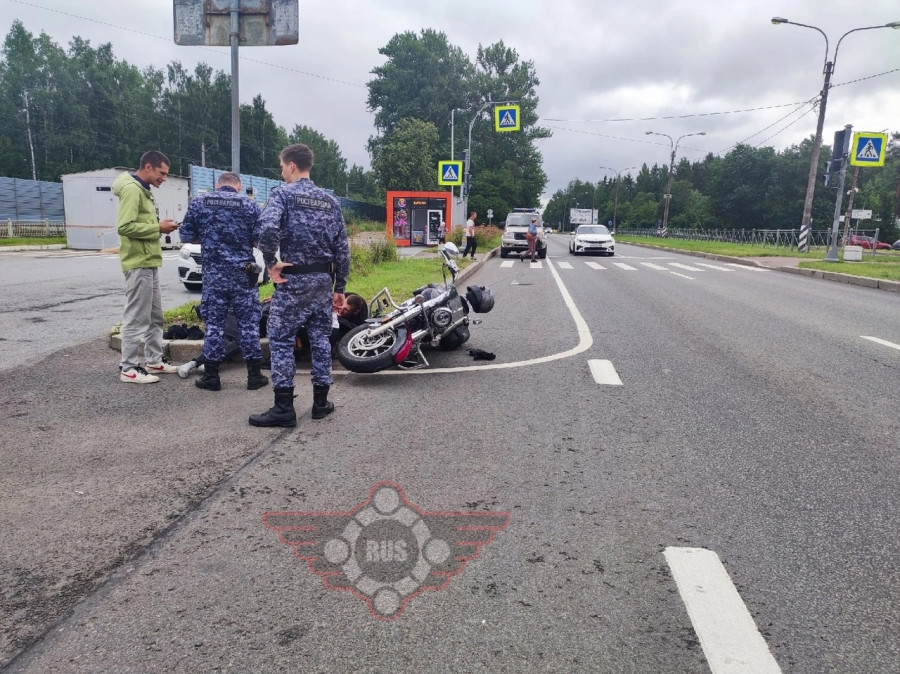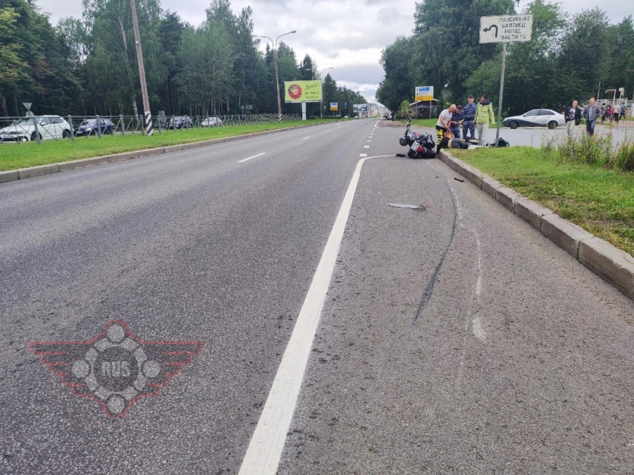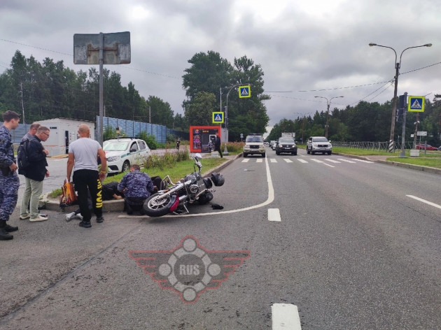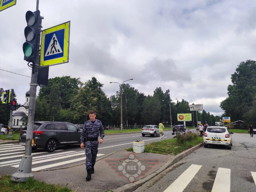 Дтп с мото на Зеленогорском ш., д.5, п. Репино. (60.172109, 29.870965) Мотоциклист цел. Два пешехода увезены в больницу. Переходили на красный.