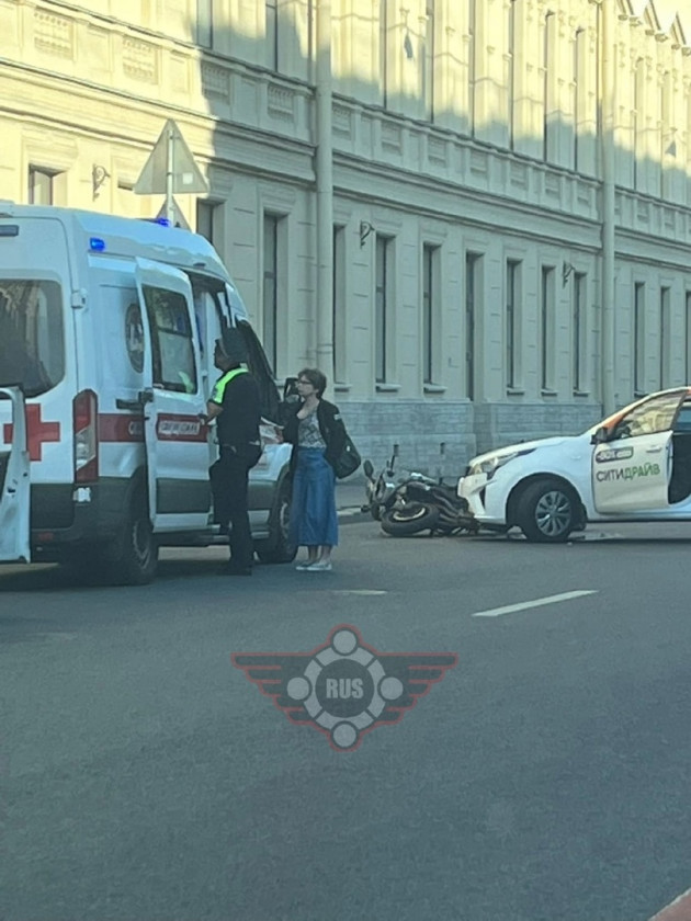 Дтп с мото на ул. Глинки, д.6. Авто и мот. Мотоциклист ходит. На месте скорая помощь.