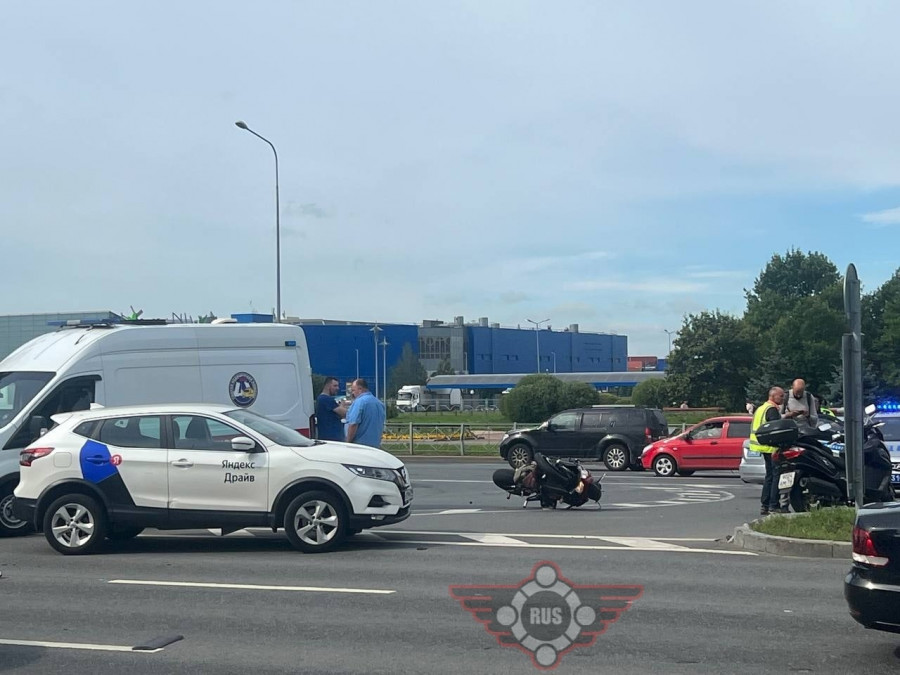Дтп с мото на Пулковском ш., д.36. Мотоциклист в машине скорой помощи. ДПС на месте.