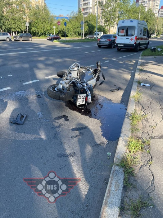 Дтп с мото на Краснопутиловской ул., д.71. Авто и мот BMW R1200GS номер 0814АЕ47. Мотоциклист в скорой (подозрение на перелом ноги, сотрясение).