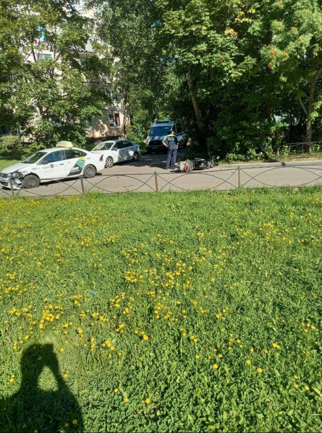Дтп с мото примерно в 10:30 на пр.Культуры, д.15 (во дворе). Такси и мот. ДПС были на месте. О состоянии мотоциклиста информации нет.