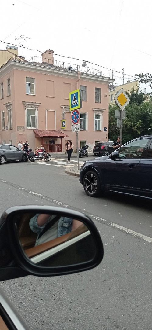 Дтп с мото примерно в 13:20 на перекрестке ул. Лабутина и Лермонтовского пр.. Авто и мот. Водитель мотоцикла (девушка) в порядке.