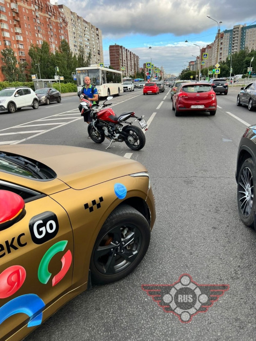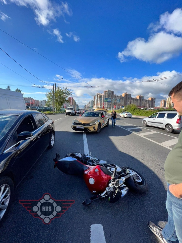 Дтп с мото на Коменданстком пр., д.12Б. Авто и мот MV Agusta Brutale номер 3828АР78. Водитель (женщина) автомобиля резко перестроилась. Мотоциклист отказался от скорой.