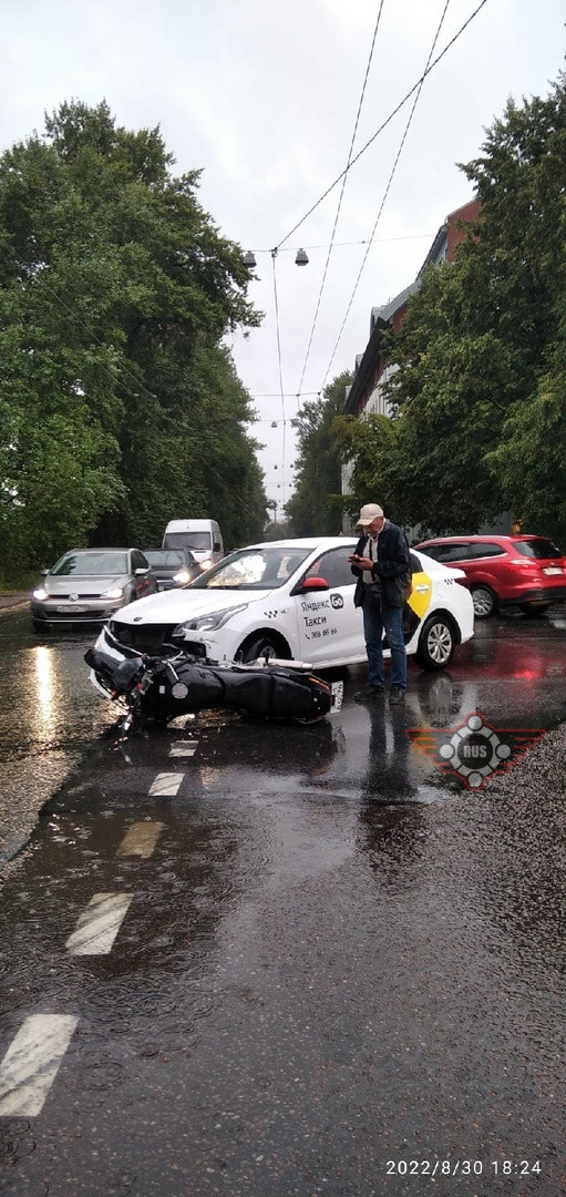 Дтп с мото примерно в 18:20 на перекрестке Чугунной ул. и Менделеевской ул.. Такси и мот. Водитель такси не пропустил мотоцикл. Мотоциклист цел. Ждут ГИБДД.