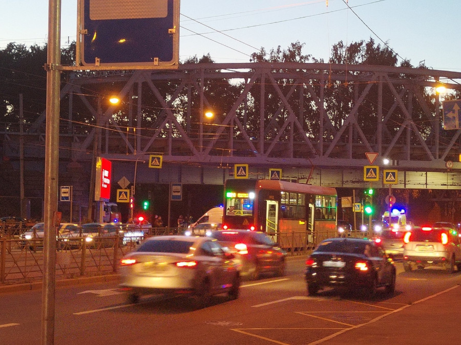 Дтп с мото на перекрестке Лесного пр. и 1-го Муринского пр.. Сбит мотоциклист, увезли на скорой.
