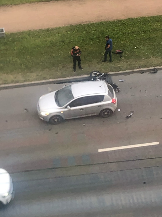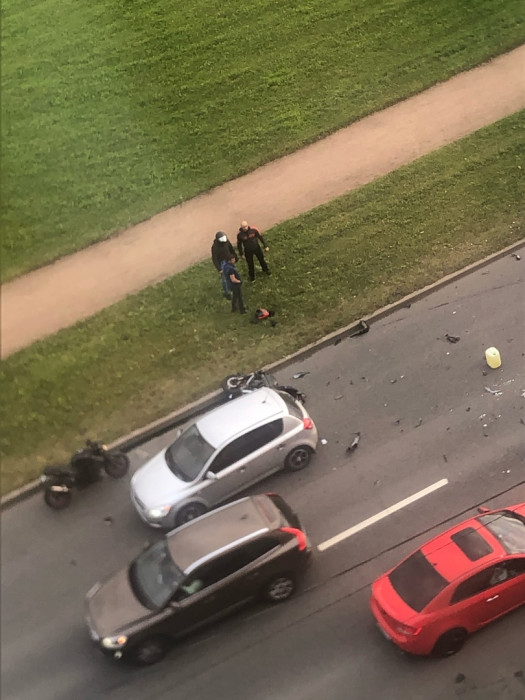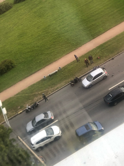 Дтп с мото на Петергофском ш., д.1к.1. Авто и мот. Мотоциклист в порядке.