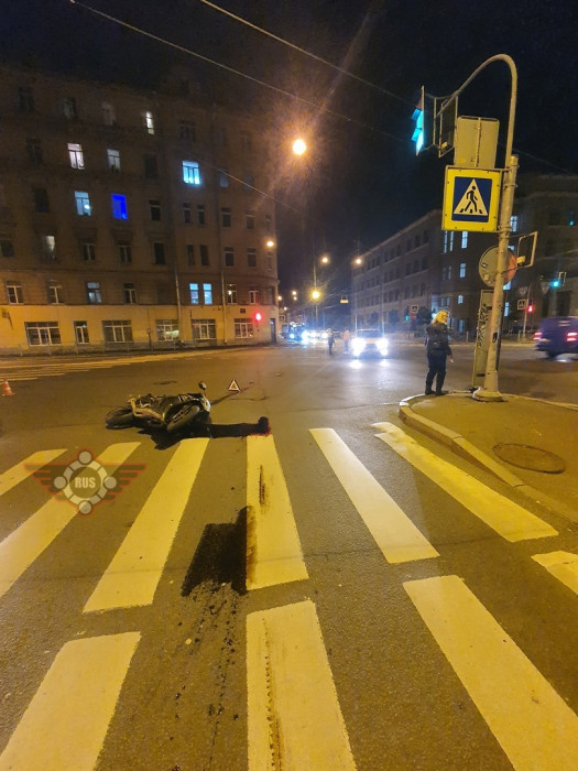 Дтп с мото на перекрестке Большой Пушкарской ул. и Введенской ул.. Каршеринг и мот. Водитель мотоцикла (девушка) в порядке. Помощь не требуется.