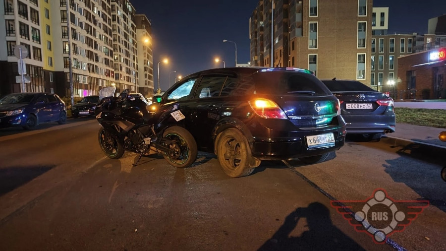Дтп с мото на пр.Ветеранов, д.171, к5. Авто и мот Kawasaki EX650F номер 8043АР78. Мотоциклист в порядке. По предварительной информации, водитель автомобиля, не убедился в отсутствии транспортных средств при выезде с парковочного места.